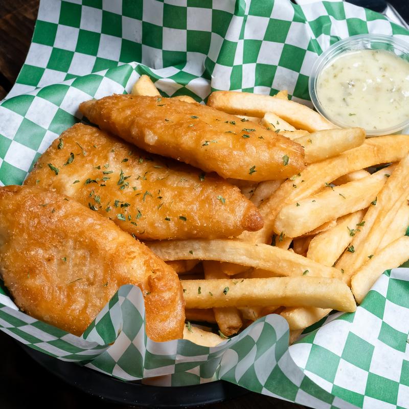 3 large pieces of fresh Alaskan cod, beer battered & fried perfectly served w/ fries & tartar sauce