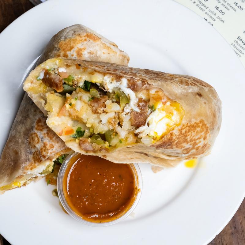Your choice of bacon, sausage or corned beef, eggs, cheese, tater tots & pico de gallo